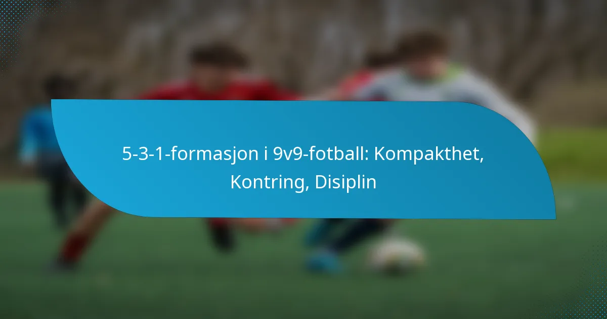 5-3-1-formasjonen er en effektiv strategi for ungdomsfotballag, med fokus på kompakthet, disiplinert forsvar og raske kontringer. Denne oppstillingen lar lag opprettholde en sterk defensiv linje samtidig som den gir fleksibilitet i overgangen til angrep.